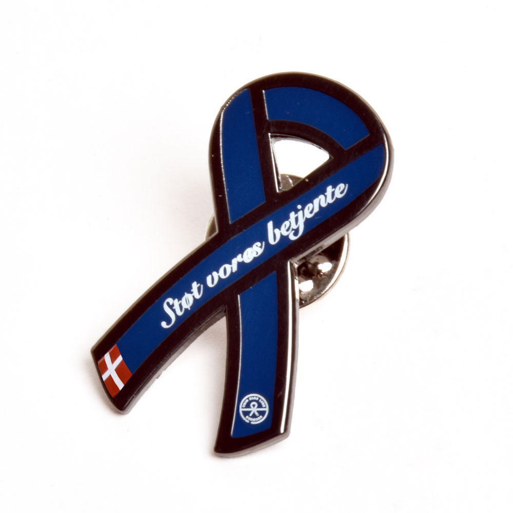 Flot lille sløjfe-pin med tekst. Perfekt til reverset på jakkesæt eller uniform fin, men kan påsættes et utal af steder.