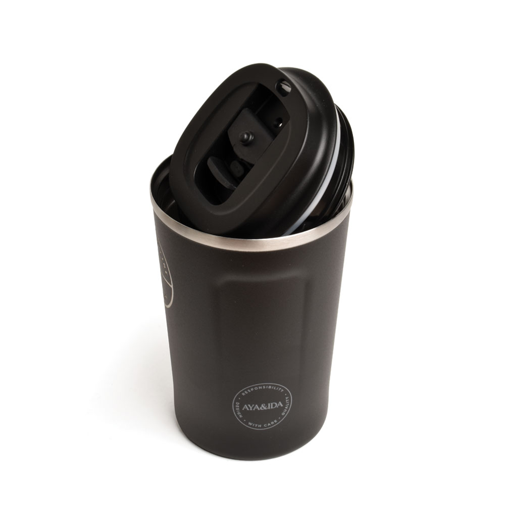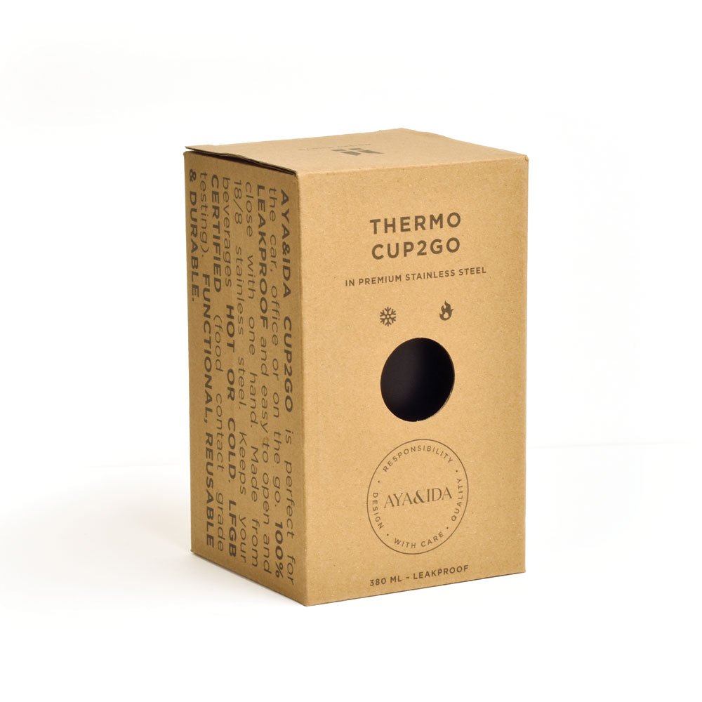 Lækker termokop fra velkendte Aya&Ida. Lukker helt tæt, så den også kan holde til udrykningskørsel. Holder varme drikke varme i op til 12 timer, og kolde drikke kolde i op til 24 timer.